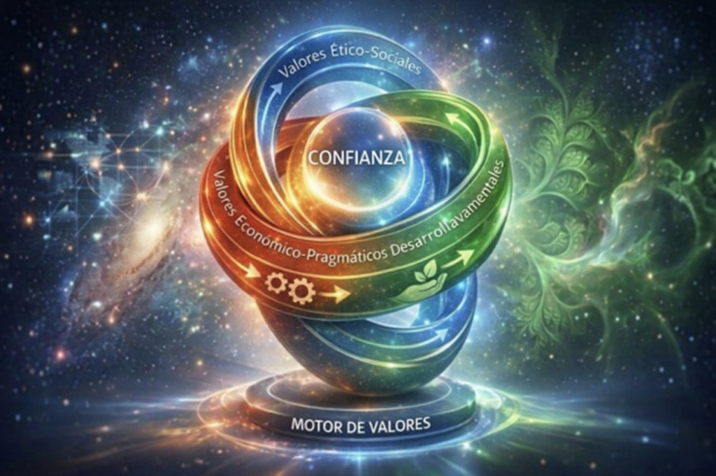 ¡Me he encontrado con una idea fascinante que estoy emocionado de compartir contigo! Imagina combinar visualmente el modelo triaxial de valores con las tres dimensiones de la Confianza. Es realmente inspirador pensar en la CONFIANZA como la “Madre de todos los valores”, tema que exploro en muchos de mis libros y artículos. Me refiero a esta combinación única como “El Motor de Valores”, y creo que realmente podría resonar contigo. Hay tanto potencial en este concepto, y te animo a profundizar en él y quizás descubrir nuevos conocimientos.