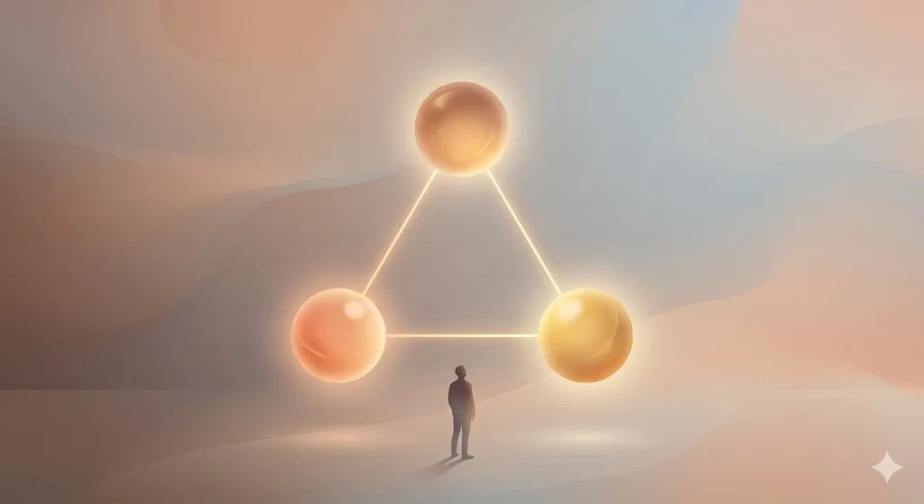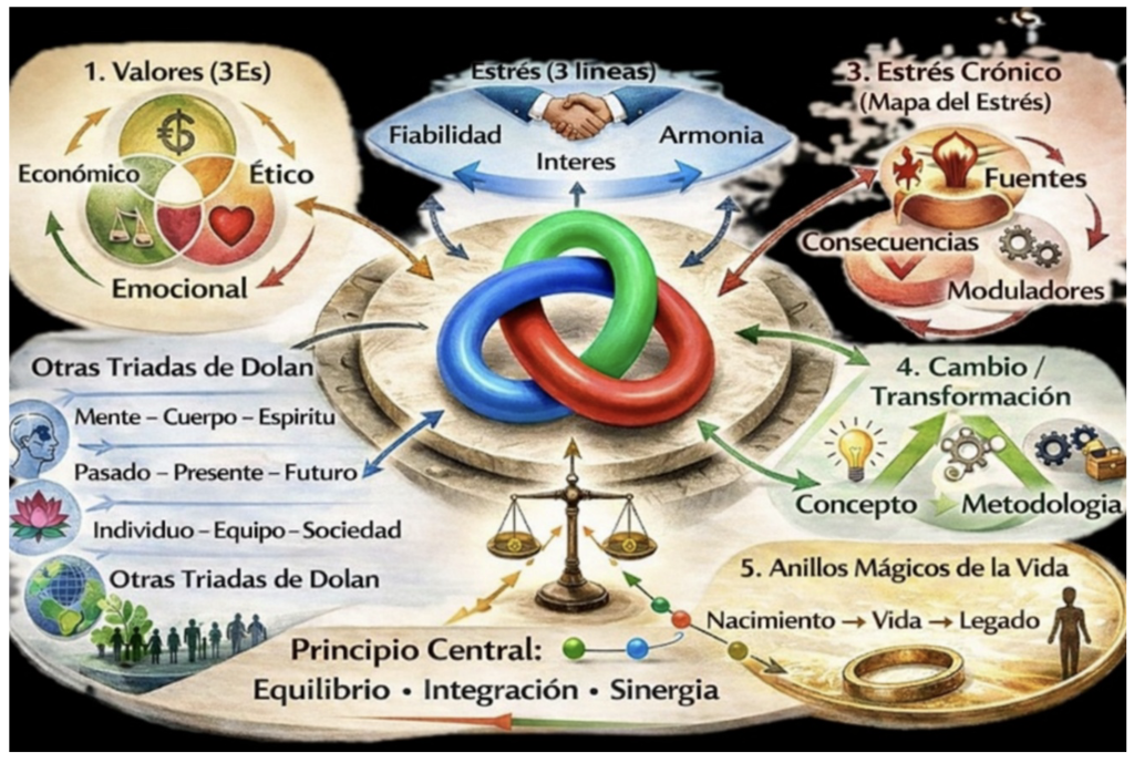 A lo largo de las últimas cuatro décadas de mi trayectoria intelectual, me he encontrado con un patrón intrigante que creo que contiene mucha sabiduría para todos nosotros: la configuración triádica. Ya sea que esté explorando valores, confianza, estrés, cambio o incluso la complejidad de la vida misma, insistentemente descubro que tres dimensiones interconectadas proporcionan la mayor perspectiva. Esto no es solo una coincidencia. Surge de una fuerte convicción de que, para comprender verdaderamente las experiencias humanas complejas, no debemos depender de oposiciones binarias simplistas o de una multiplicidad caótica. En cambio, es a través de triadas dinámicas que podemos alcanzar equilibrio, movimiento e integración.